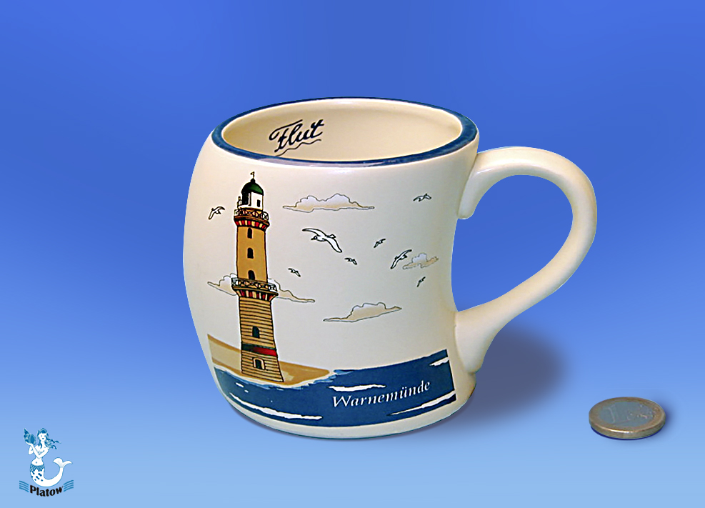/ Becher Leuchtturm Warnemünde gebogen 9cm
