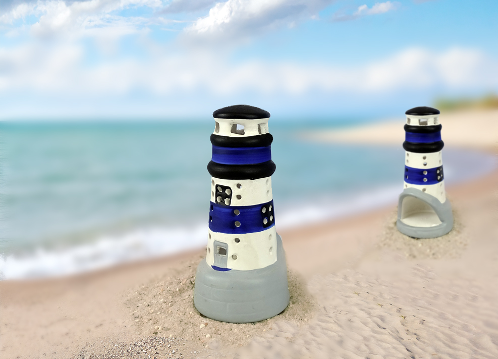 / Leuchtturm blau/weiß Keramik 12cm