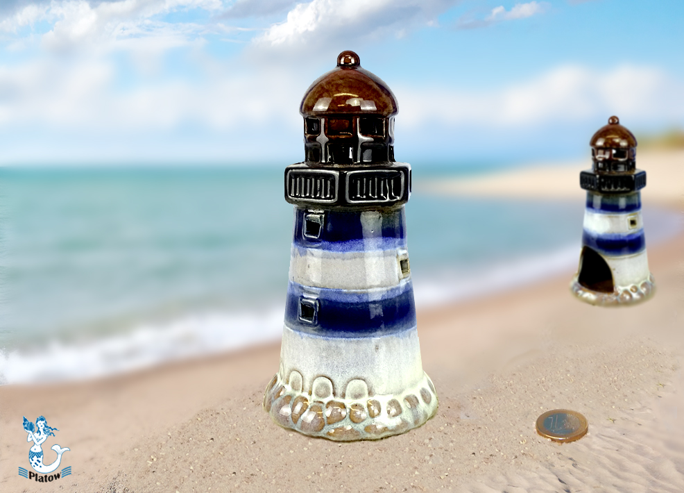 / Leuchtturm glasiert b/w Keramik 16cm