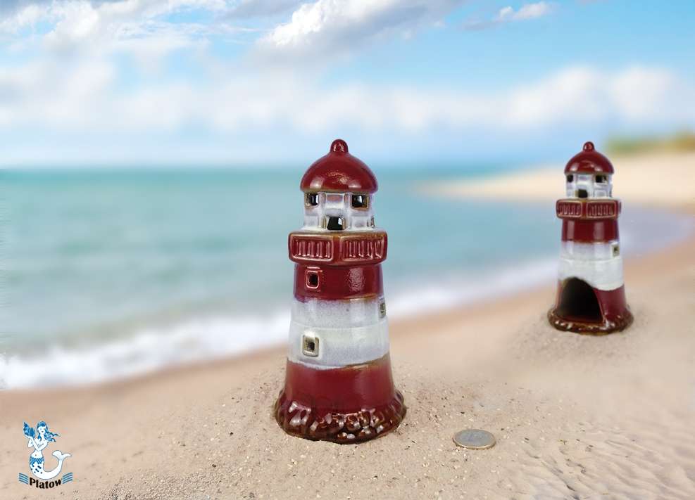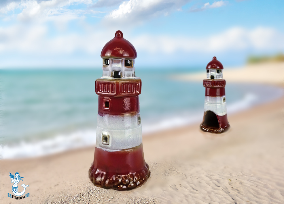 Leuchtturm glasiert rot/weiß Keramik, 16cm