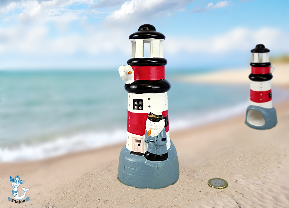 Leuchtturm Kapitän/Möwe r/w Keramik 20 cm