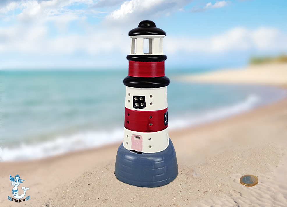 / Leuchtturm rot/weiß aus Keramik 20cm